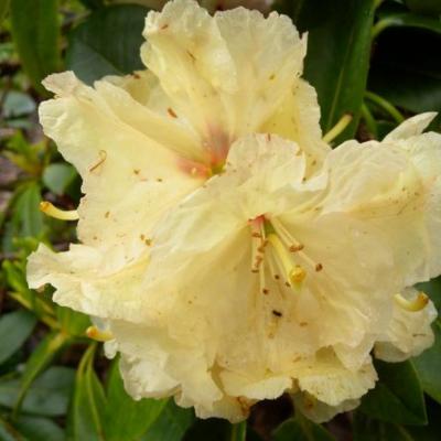 De Elsie Straver bloeit in mei met lichtgele bloemen welke een oranje tekening in het hart hebben. De kelkvormige bloemen hebben een gerafelde rand. Deze Rhododendron heeft een compacte groei en grote donkergroene glanzende bladeren. De Elsie Straver is goed winterhard en kan prima toegepast worden in een Rhododendwolk of Border Boeket.
